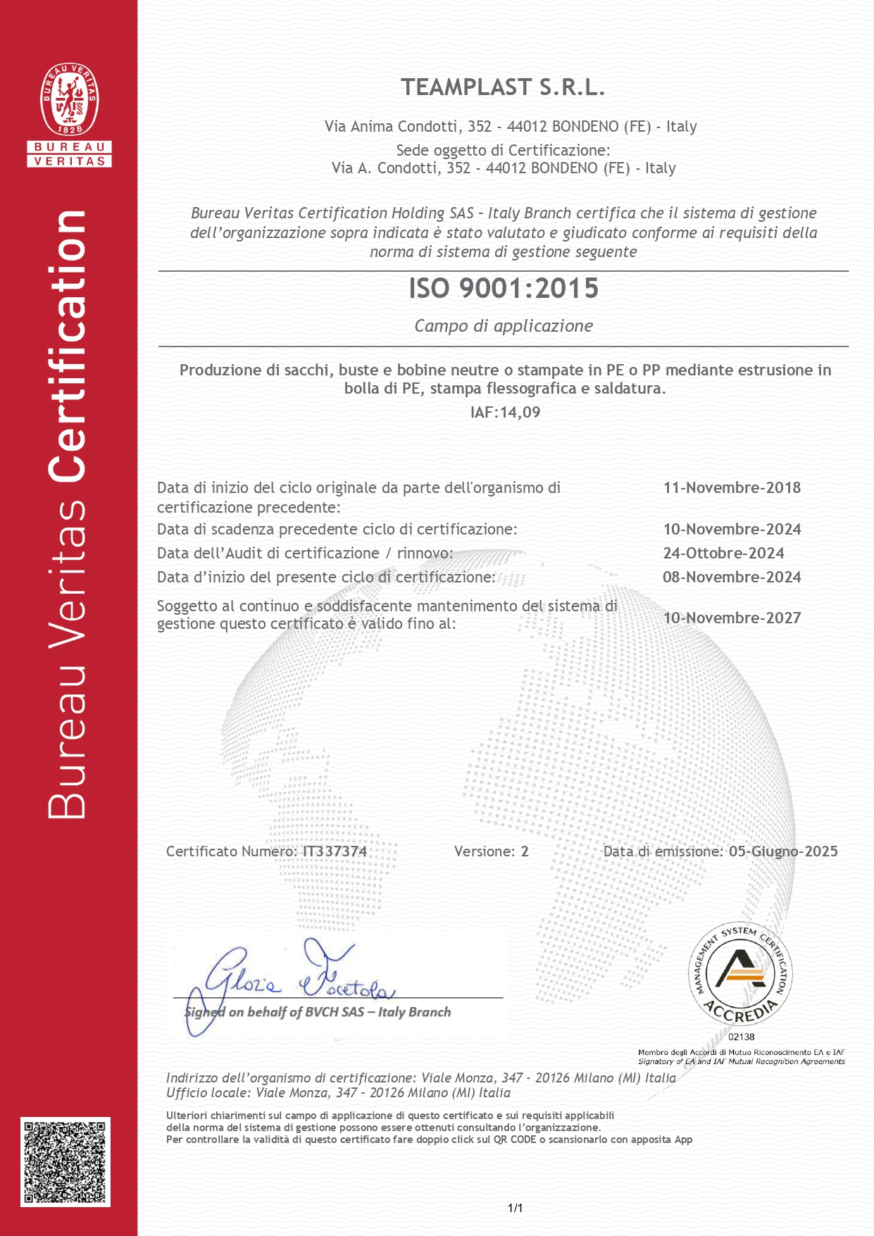 Le Certificazioni di Teamplast: